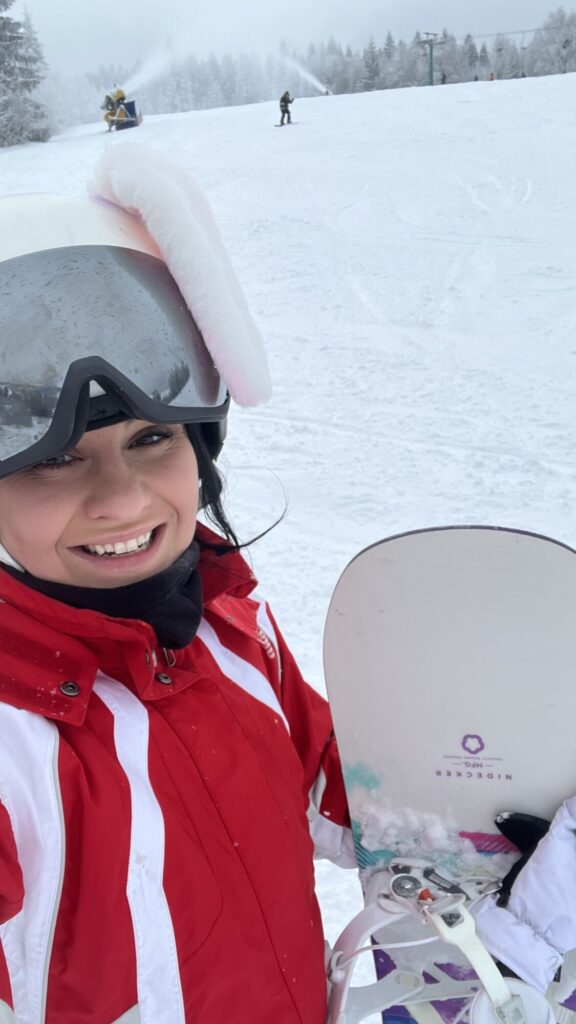 Byla jsem na snowboardu celkově potřetí, z čehož jednou jsem měla první lekci s instruktorem.